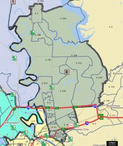In Bossier Parish, the redistricting issue was not which district/districts would be eliminated, but what to do with the excess population (District 8 was 24% overpopulated). Precincts in the southern portion of the district around Barksdale were given to neighboring districts, while a handful of precincts inside of Bossier City were added from District 9, represented by Henry Burns. The overall political effect of these changes was nil, although it’s worth noticing that the black voter population increased from 15 to 17%. This seat will almost certainly stay in Republican hands this fall.