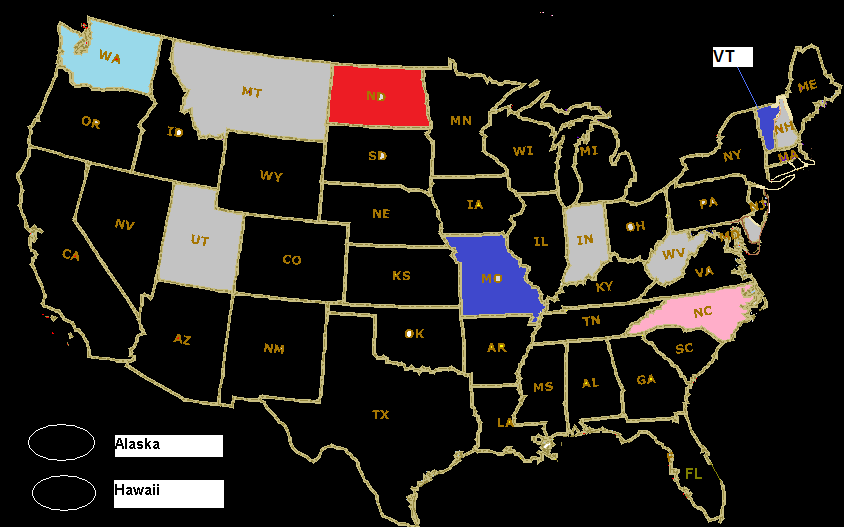 (5) No Senate/gubernatorial race in 2012 for this state (black)